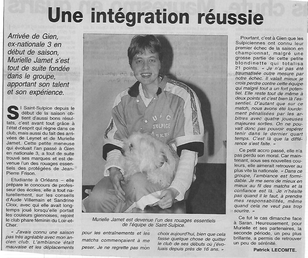 Saison 2001-2002 : Portrait de Murielle Jamet (Saint-Sulpice