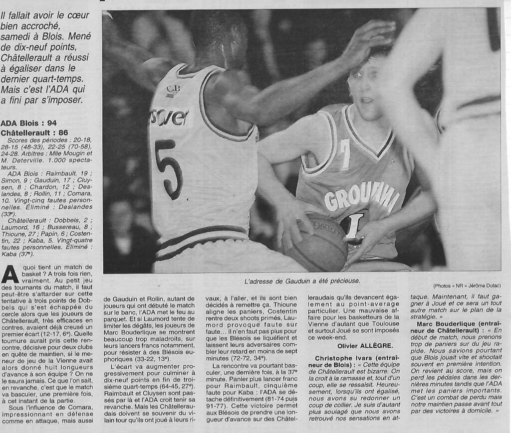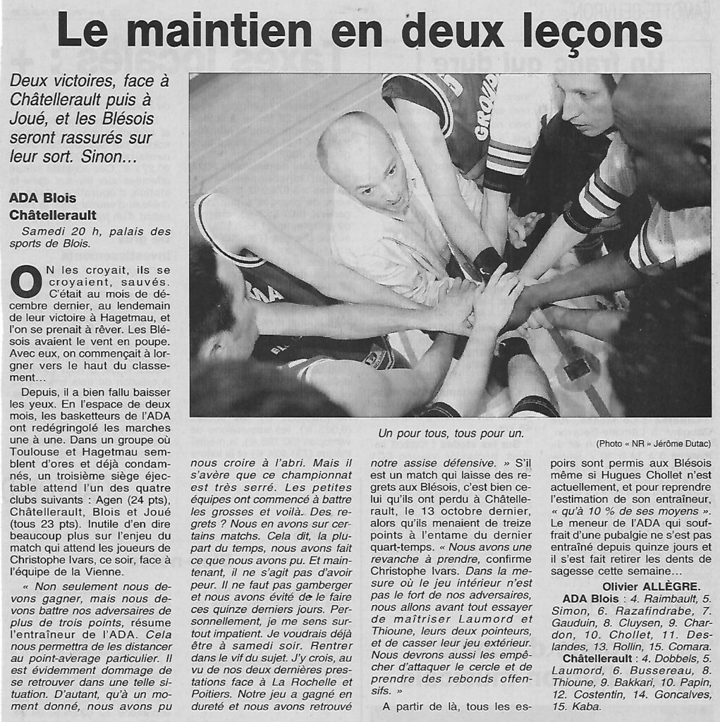 Saison 2001-2002 : En Championnat de Nationale Masculine 2, l’ADA Blois bat Châtellerault