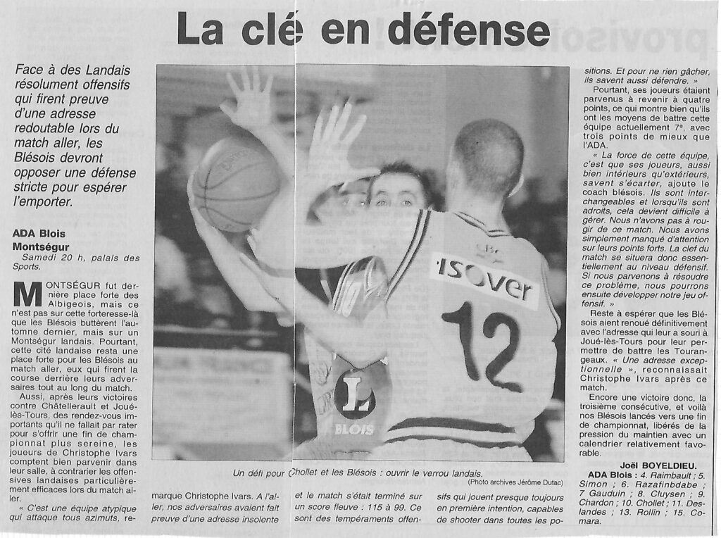 Saison 2001-2002 : En Championnat de Nationale Masculine 2, l’ADA Blois bat Monségur