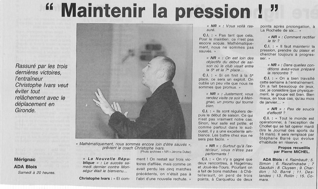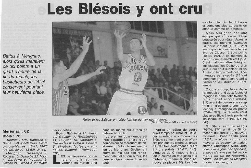 Saison 2001-2002 : En Championnat de Nationale Masculine 2, Mérignac bat l’ADA Blois