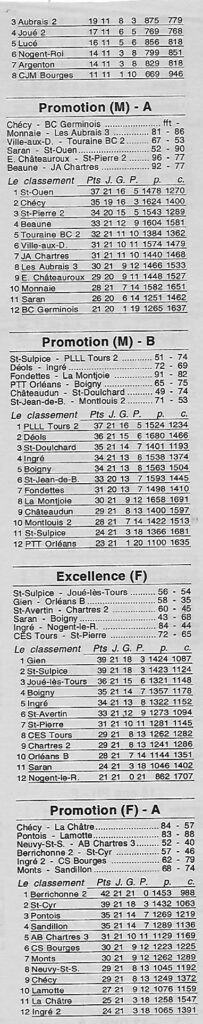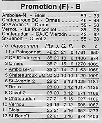 Saison 2001-2002 : Résultats et Classements après la 21ème Journée des Championnats Régionaux