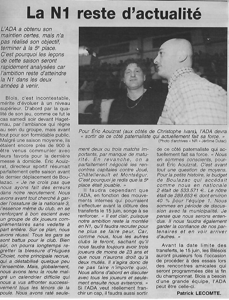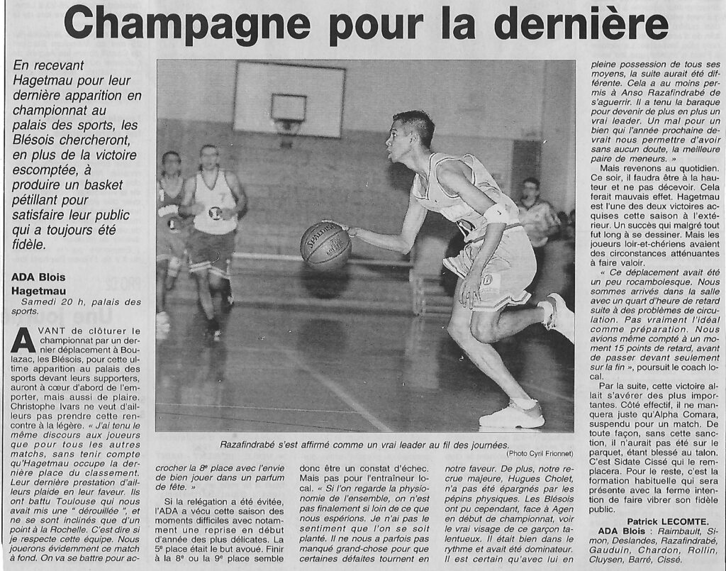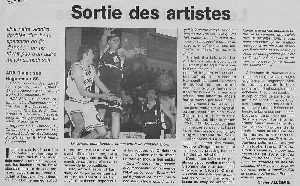 Saison 2001-2002 : En Championnat de Nationale Masculine 2, pour son dernier Match à domicile, l’ADA Blois s’impose très largement face à Hagetmau
