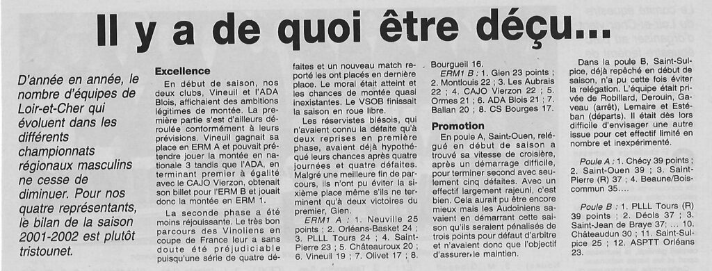 Saison 2001-2002 : Bilan Tristounet pour les Clubs du Loir-et-Cher