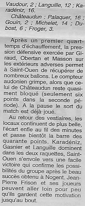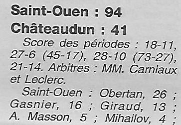 Saison 2002-2003 : En Championnat de Promotion d’Excellence Masculine B, lors de la 2ème Journée, Saint-Ouen bat Châteaudun BC