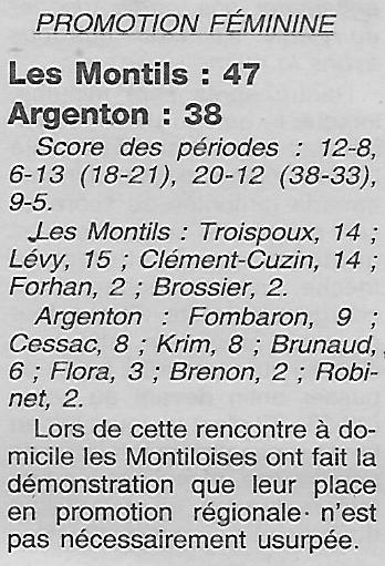 Saison 2002-2003 : En Championnat de Promotion d’Excellence Régionale Féminine A, lors de la 2ème Journée, Les Montils bat l’US Argenton