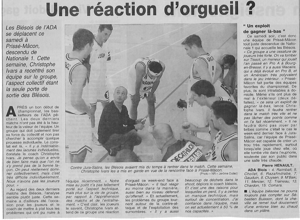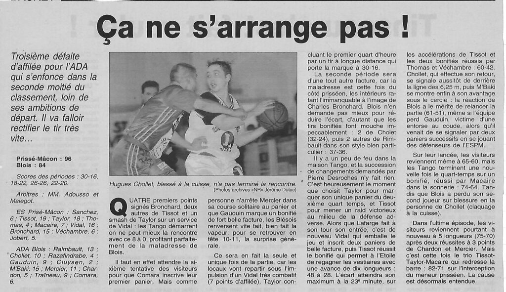 Saison 2002-2003 : En Championnat de Nationale Masculine 2, l’ADA Blois s’incline face à Prissé Mâcon