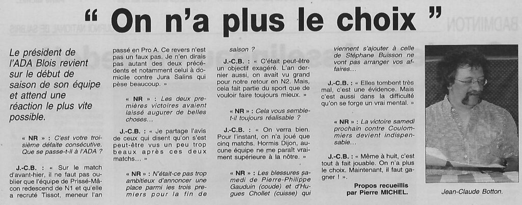 Saison 2002-2003 : Interview de Jean-Claude Botton Président de l’ADA Blois
