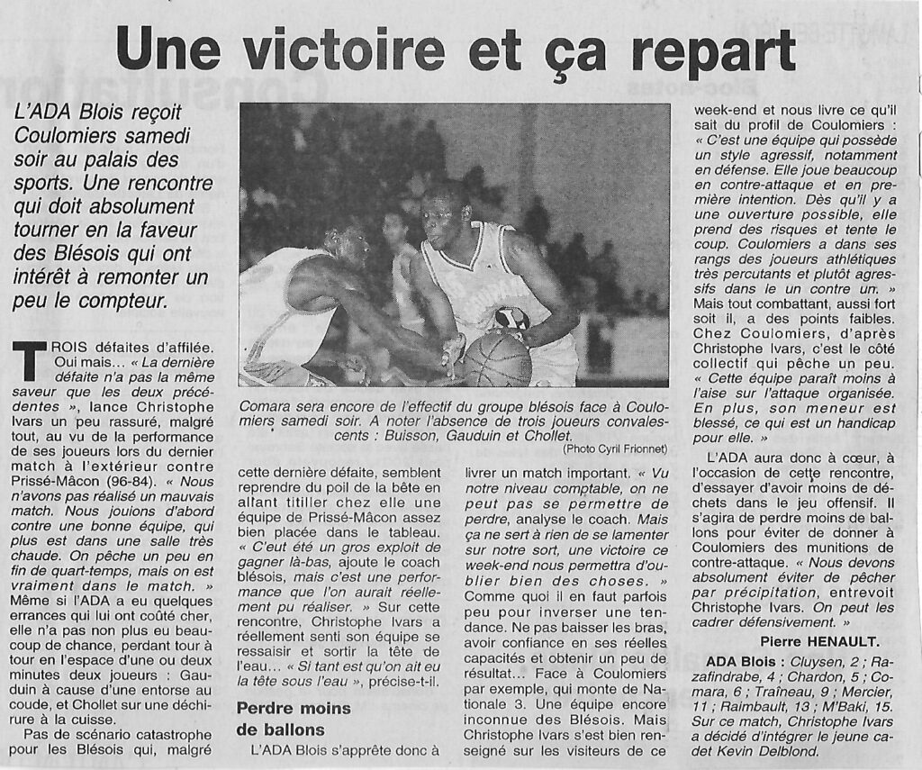 Saison 2002-2003 : En Championnat de Nationale Masculine 2, l’ADA Blois s’incline à domicile face à Coulommiers-Brie-Basket