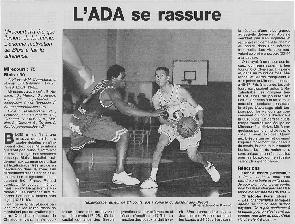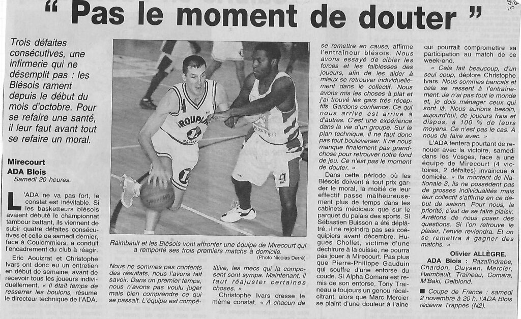 Saison 2002-2003 : En Championnat de Nationale Masculine 2, l’ADA Blois bat Mirecourt