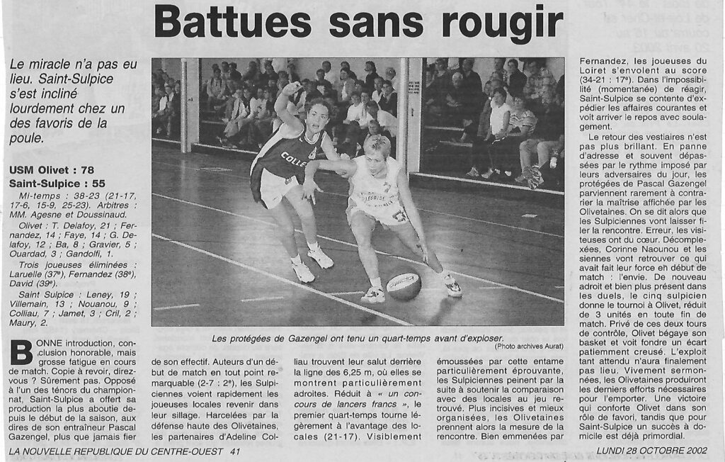 Saison 2002-2003 : En Championnat de Nationale Féminine 3, l’USM Olivet bat Saint-Sulpice