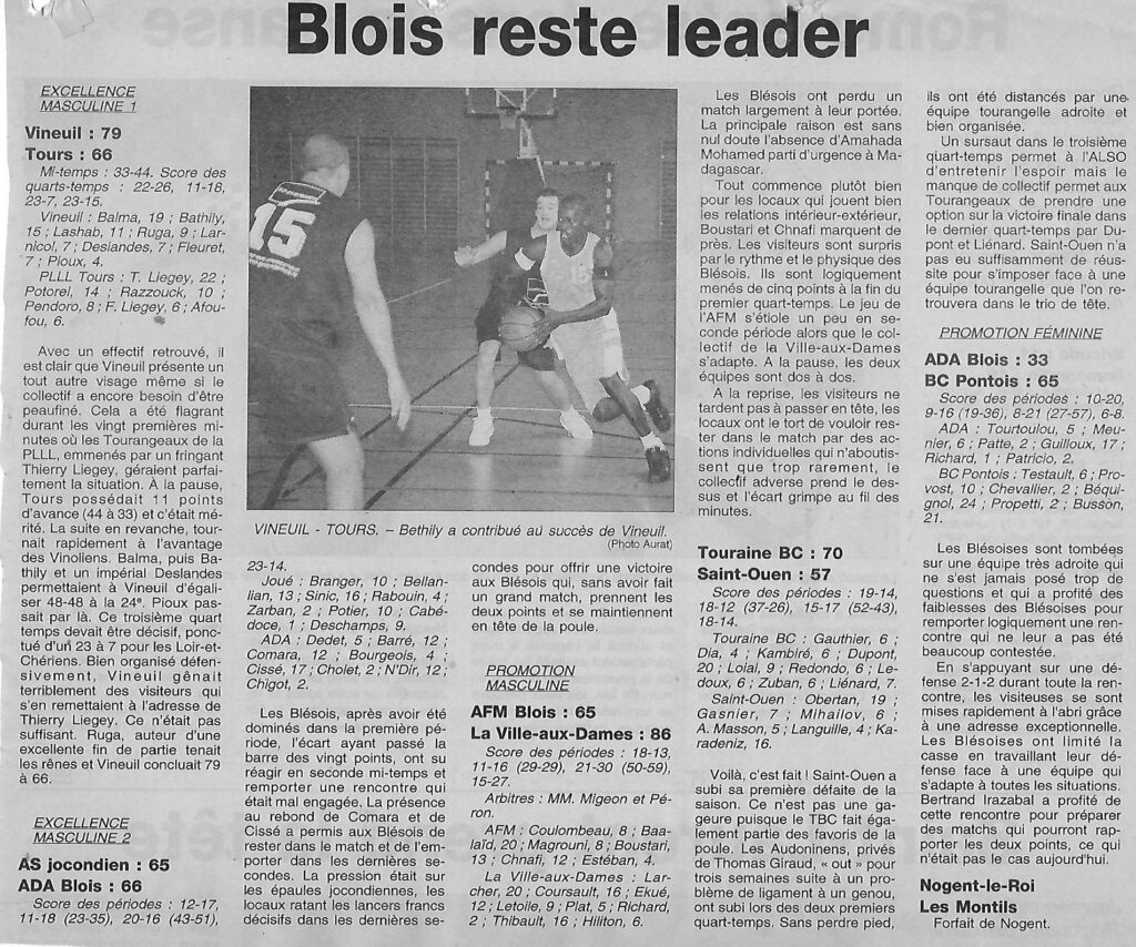 Saison 2002-2003 : Résultats de la 5ème Journée des équipes du Loir-et-Cher engagées dans les Championnats Régionaux