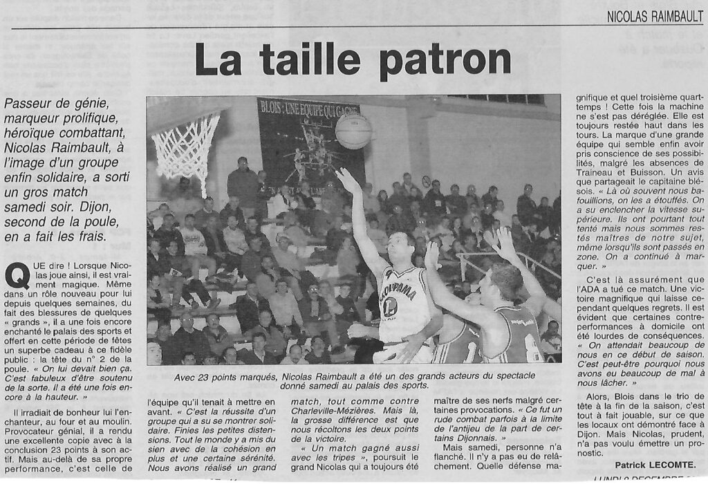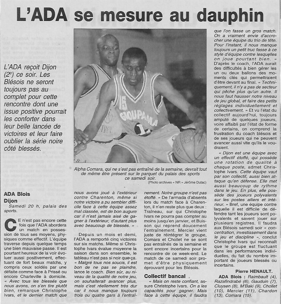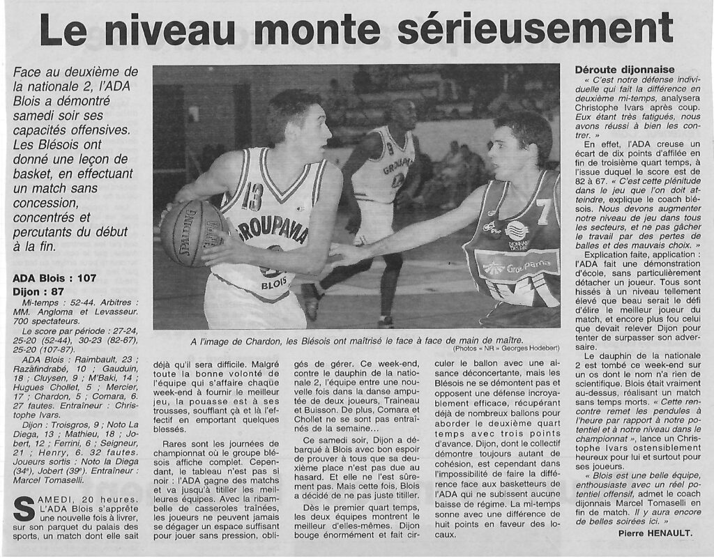 Saison 2002-2003 : En Championnat de Nationale Masculine 2, l’ADA Blois bat Dijon