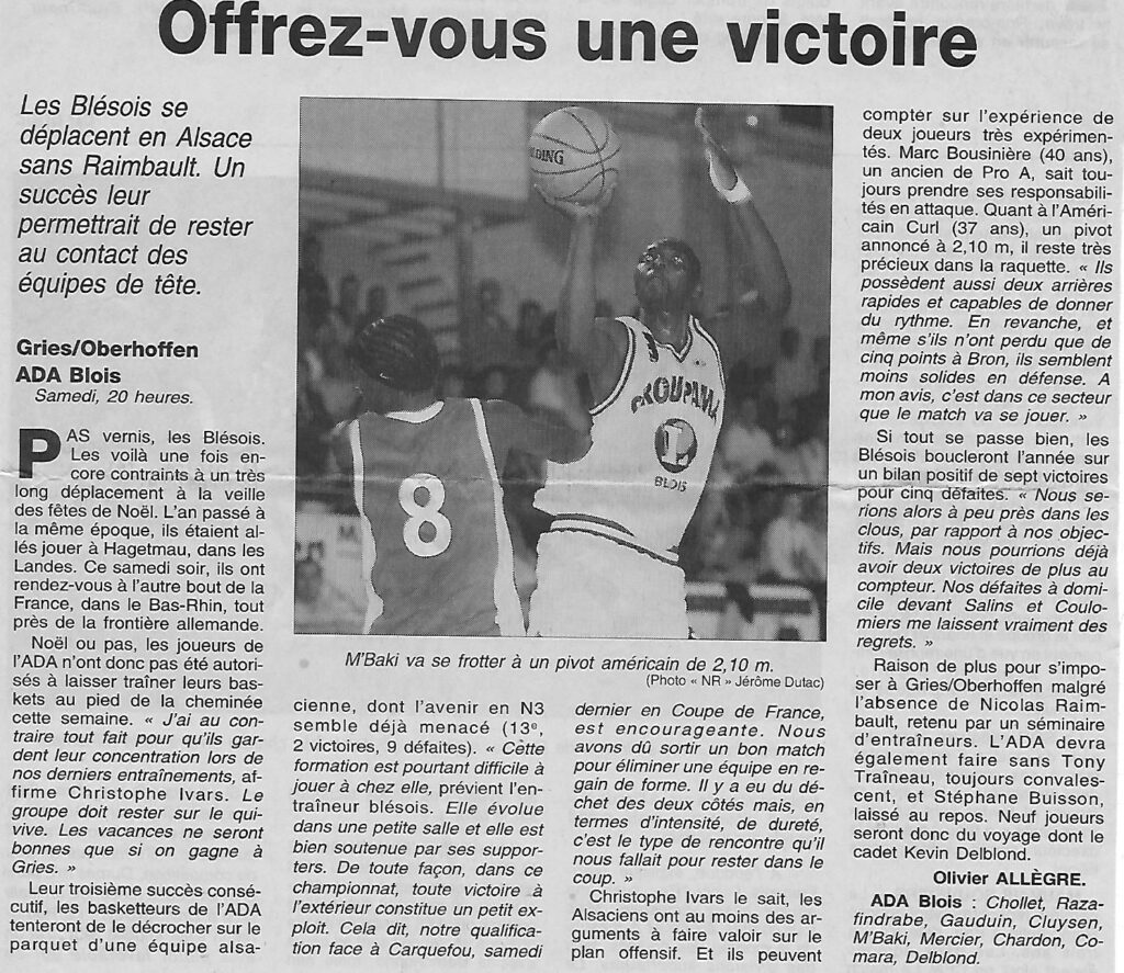 Saison 2002-2003 : En Championnat de Nationale Masculine 2, l’ADA Blois s’incline à Gries
