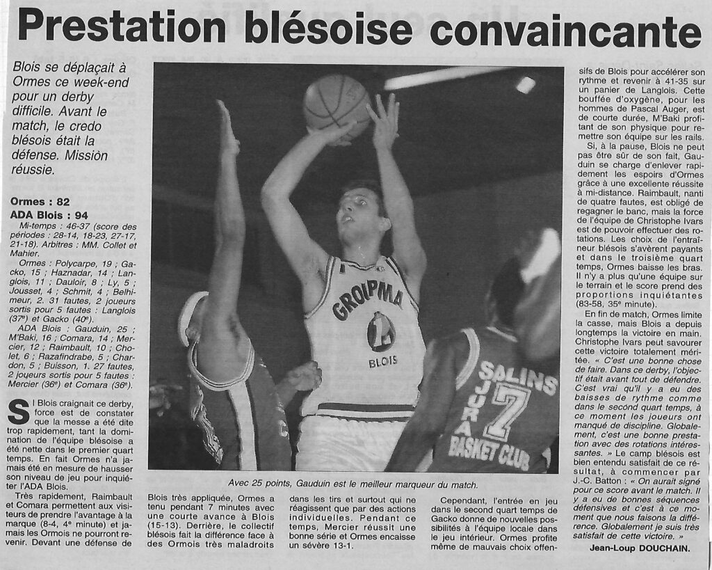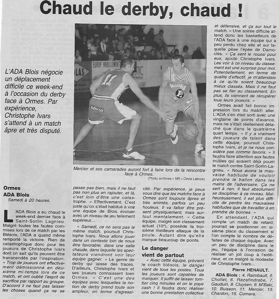Saison 2002-2003 : En Championnat de Nationale Masculine 2, l’ADA Blois bat l’ES Ormes