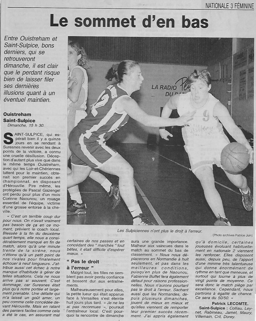 Saison 2002-2003 : En Championnat de Nationale Féminine 3, Saint-Sulpice s’incline lourdement à Ouistreham