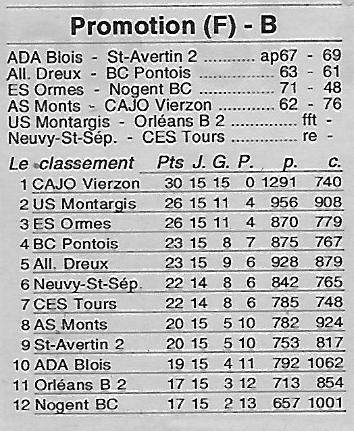 Saison 2002-2003 : Résultats et Classements après la 15ème Journée des Championnats d’Excellence Féminine et de Promotion d’Excellence Féminine A et B