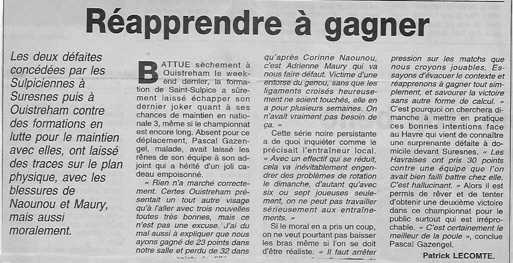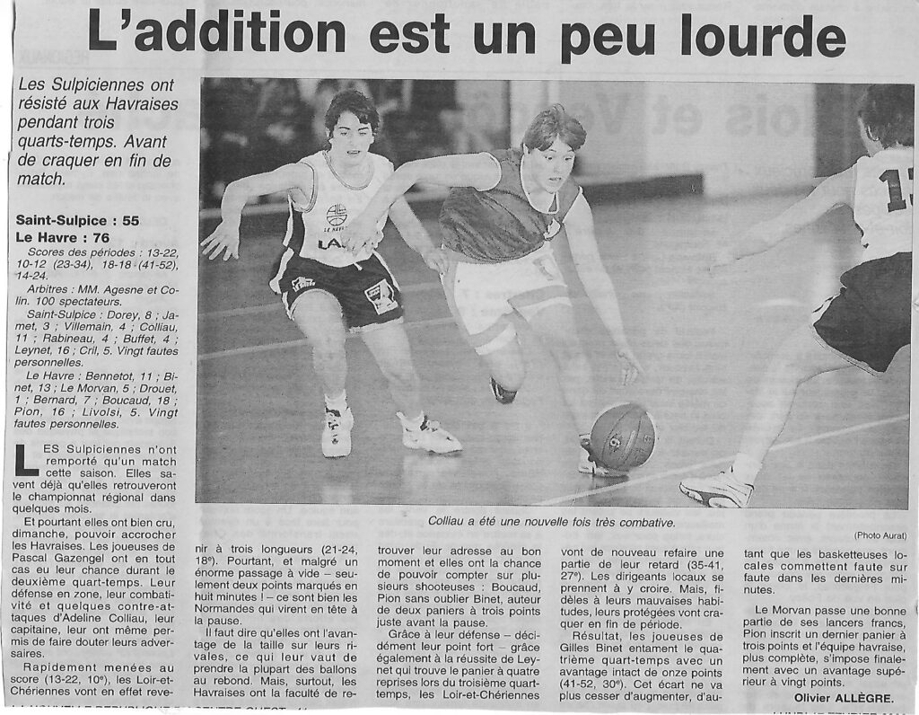 Saison 2002-2003 : En Championnat de Nationale Féminine 3, Saint-Sulpice s’incline en fin de rencontre face aux Havraises