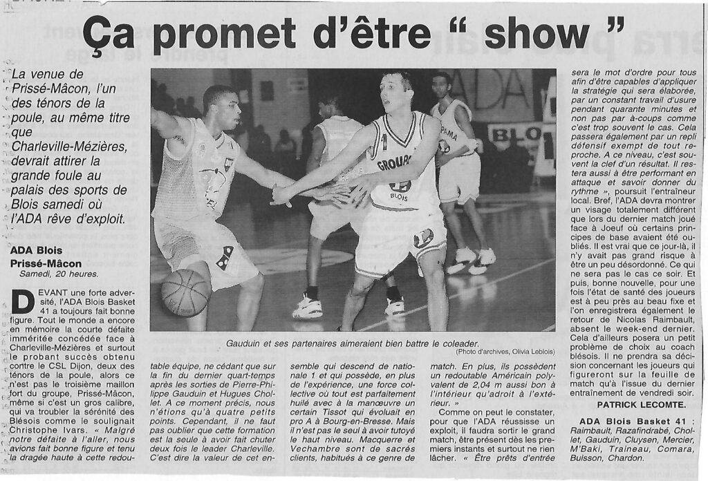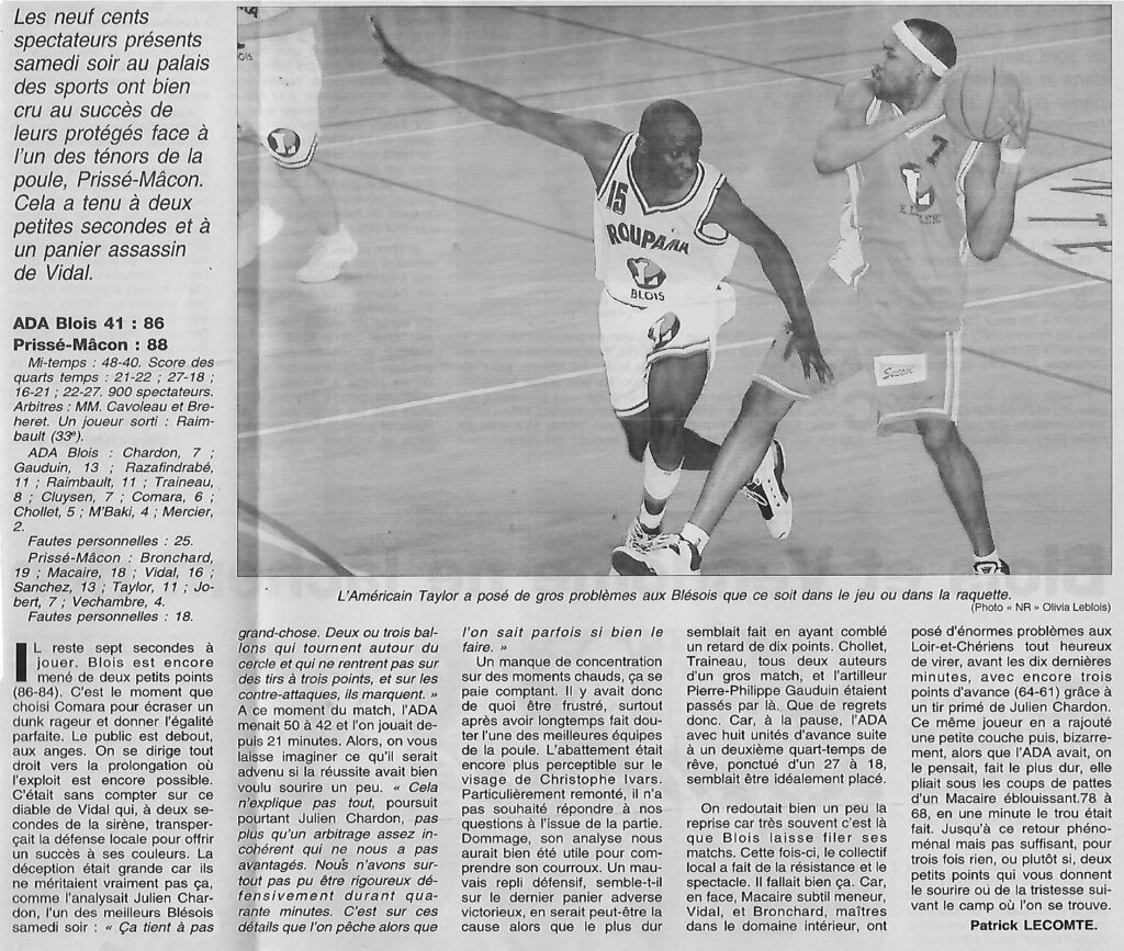 Saison 2002-2003 : En Championnat de Nationale Masculine 2, l’ADA Blois s’incline à Domicile face à Prissé-Mâcon
