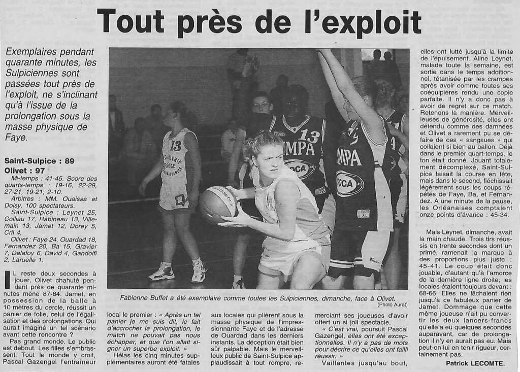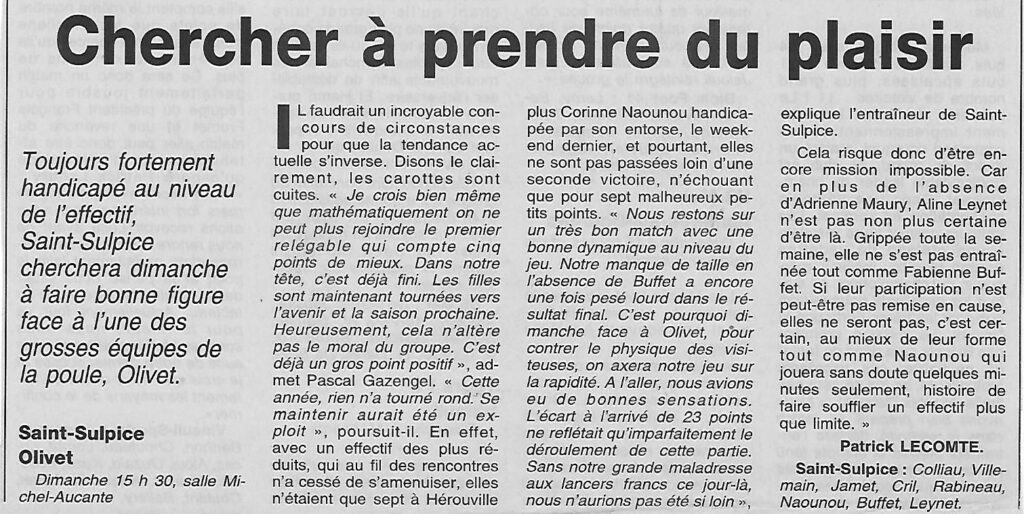 Saison 2002-2003 : En Championnat de Nationale Féminine 3, Saint-Sulpice frôle l’exploit mais s’incline à domicile face à Olivet