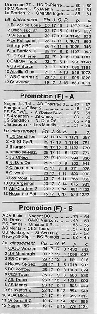 Saison 2002-2003 : Résultats et Classements après la 17ème Journée des Championnats d’Excellence Régionale Féminine et Promotion d’Excellence Régionale Féminine A et B