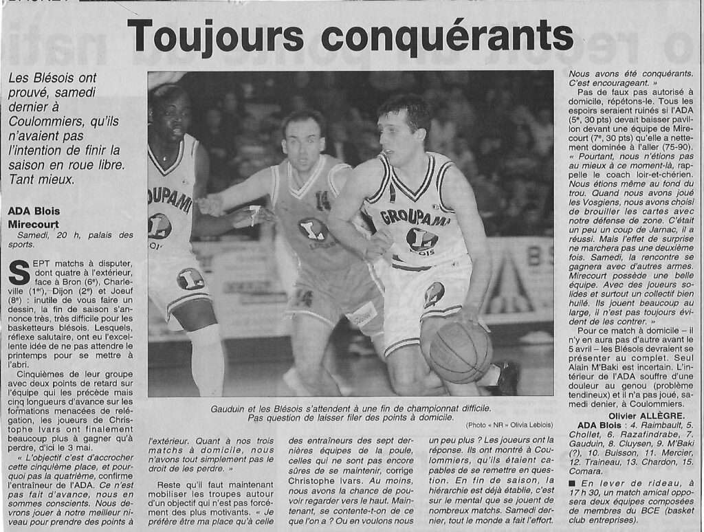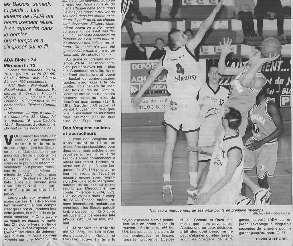 Saison 2002-2003 : En Championnat de Nationale Masculine 2, l’ADA Blois s’impose sur le Fil face à Mirecourt