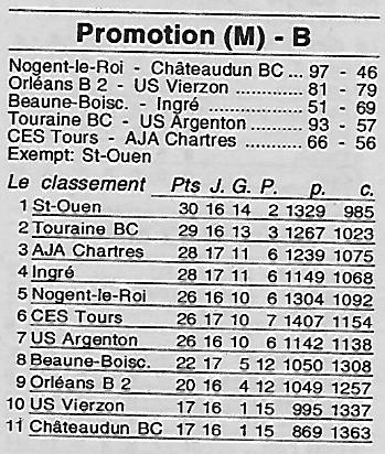 Saison 2002-2003 : Résultats et Classements après la 17ème Journée des Championnats de Promotion d’Excellence Masculine A et B