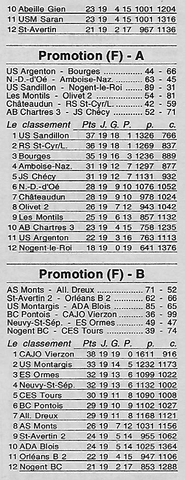 Saison 2002-2003 : Résultats et Classements après la 19ème Journée des Championnats d’Excellence Régionale Féminine et Promotion d’Excellence Régionale Féminine A et B