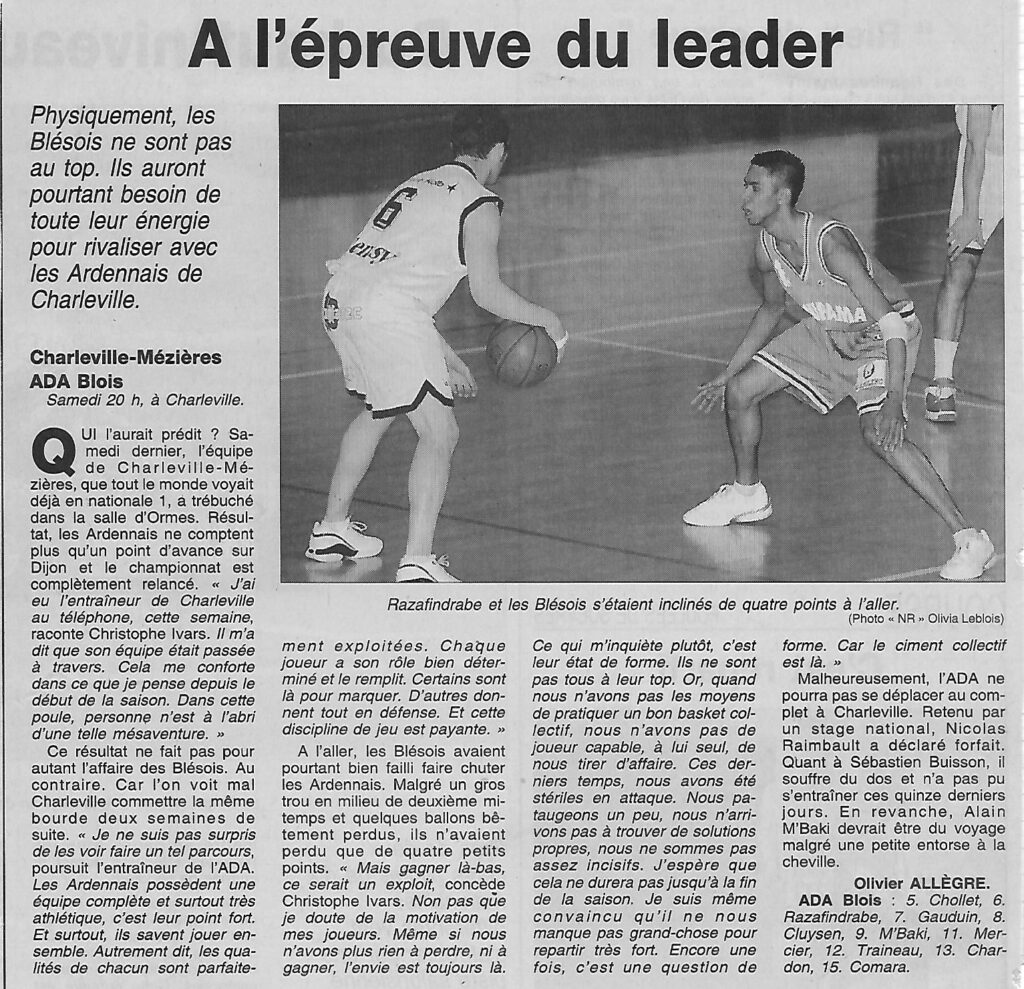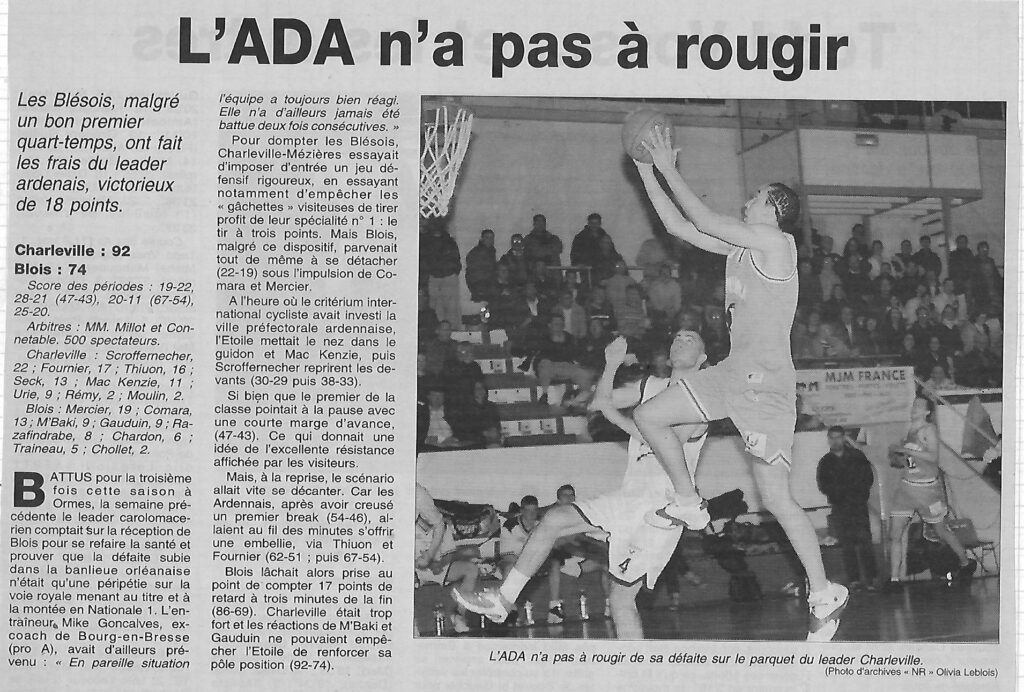 Saison 2002-2003 : En Championnat de Nationale Masculine 2, l’ADA Blois s’incline chez le leader Charleville
