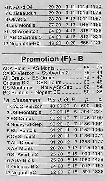 Saison 2002-2003 : Résultats et Classements après la 20ème Journée des Championnats d’Excellence Régionale Féminine et de Promotion d’Excellence Régionale Féminine A et B