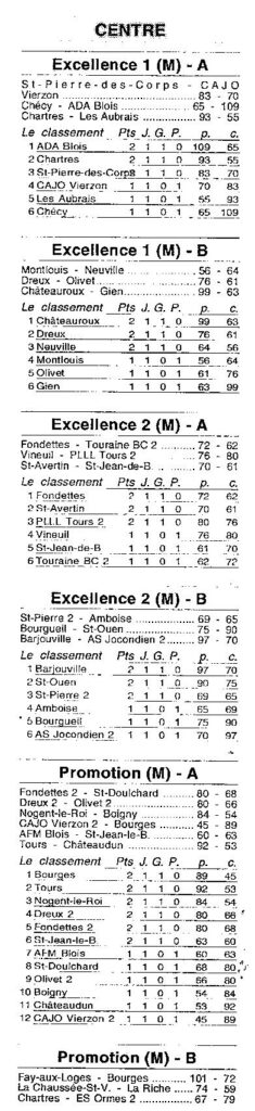 Saison 2003-2004 : Résultats et Classements après la 1ère Journée des Championnats Régionaux
