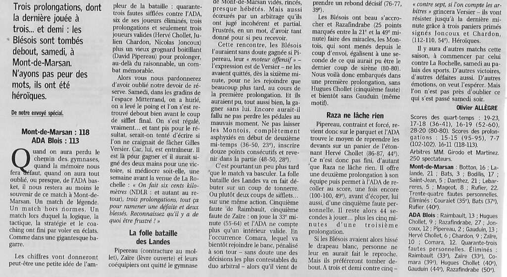 Saison 2003-2004 : En Championnat de Nationale Masculine 2, Mont-de-Marsan bat l’ADA Blois après 3 prolongations