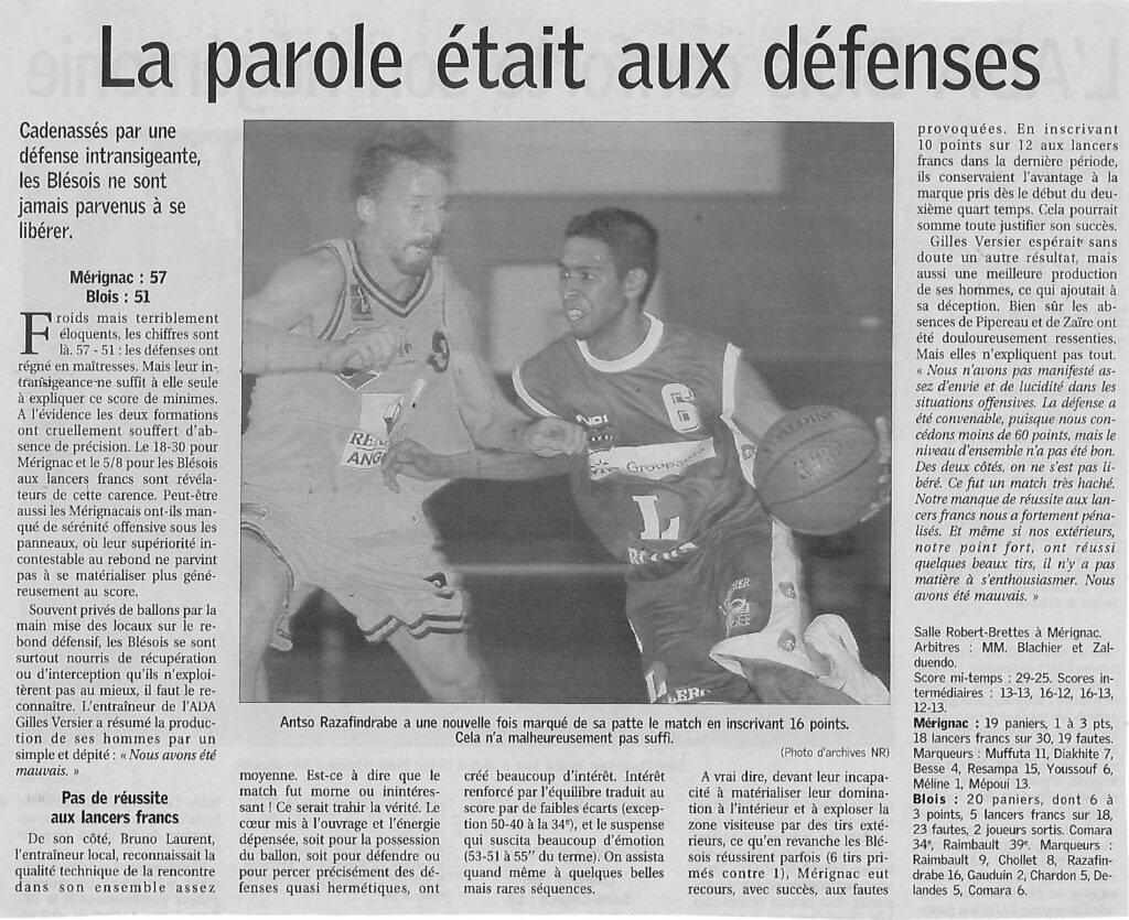 Saison 2003-2004 : En Championnat de Nationale Masculine 2, Mérignac bat l’ADA Blois