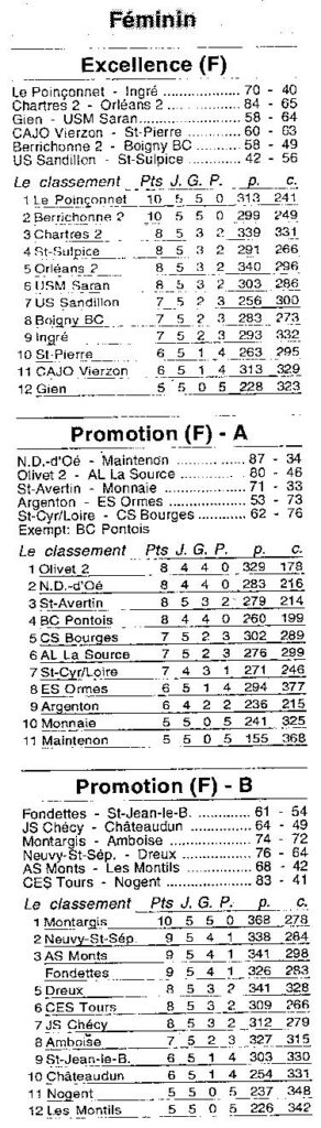 Saison 2003-2004 : Résultats et Classements après la 5ème Journée des Championnats Régionaux