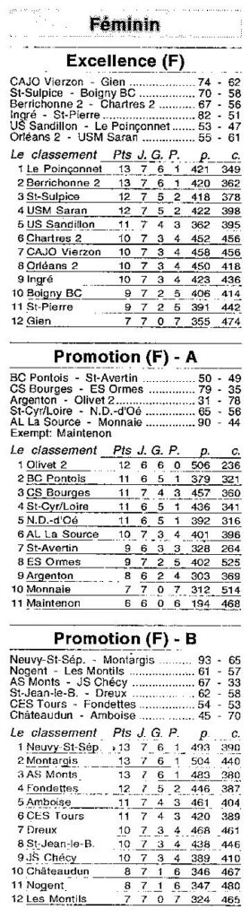 Saison 2003-2004 : Résultats et Classements après la 7ème Journée des Championnats Régionaux