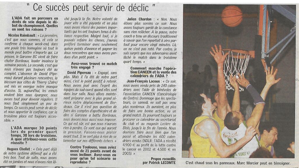 Saison 2003-2004 : En Championnat de Nationale Masculine 2, l’ADA Blois domine Garonne BC