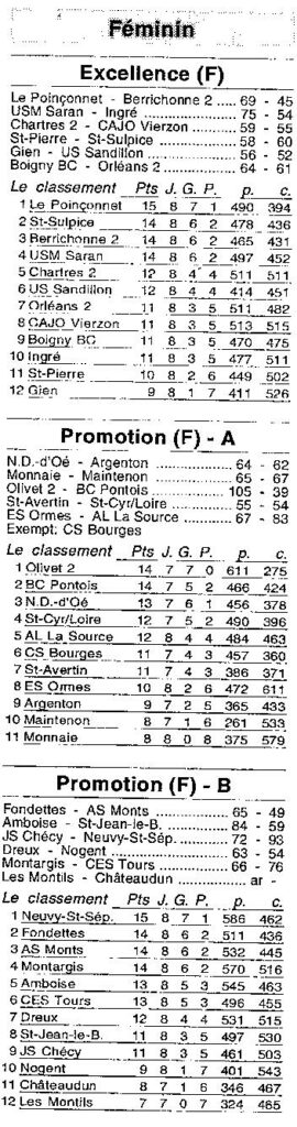 Saison 2003-2004 : Résultats et Classements après la 8ème Journée des Championnats Régionaux