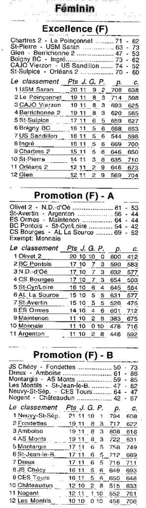 « Saison 2003-2004 : Résultats et Classements après la 1ère Journée de la 2ème Phase des Championnats d’Excellence Régionale Masculine