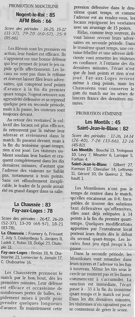 Saison 2003-2004 : Résultats des équipes du Loir et Cher qualifiées pour la 2ème Phase des Championnats Régionaux