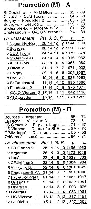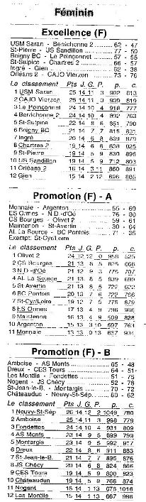 Saison 2003-2004 : Résultats et Classements après la 14ème Journée des Championnats Régionaux