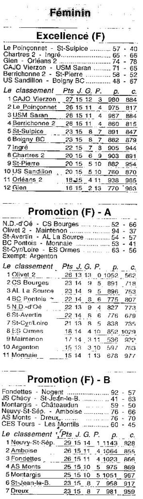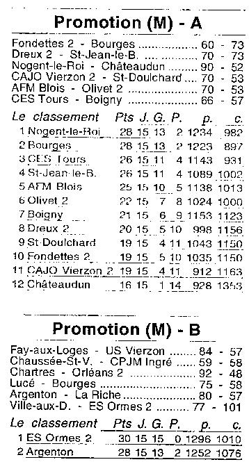Saison 2003-2004 : Résultats et Classements après la 15ème Journée des Championnats Régionaux