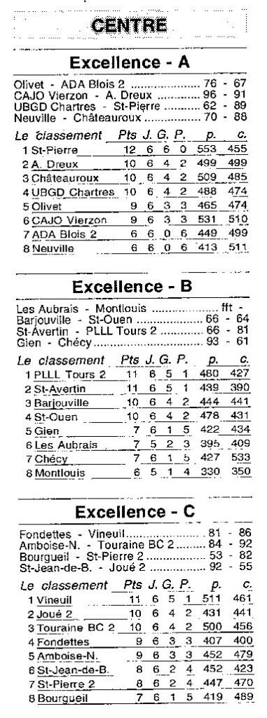 Saison 2003-2004 : Résultats et Classements après la 6ème Journée de la 2ème Phase des Championnats d’Excellence Régionale