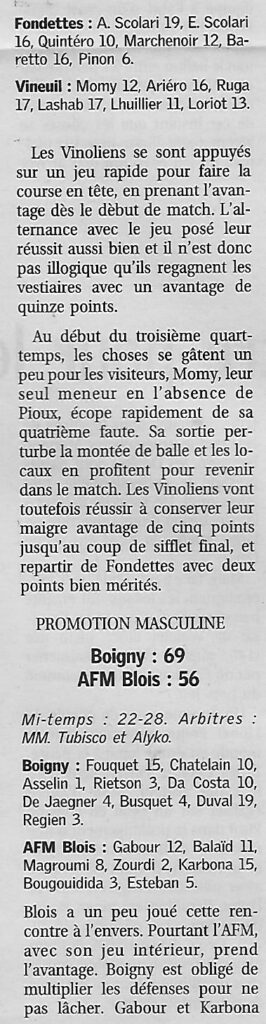 Saison 2003-2004 : Résultats des équipes du Loir et Cher qualifiées pour la 2ème Phase des Championnats Régionaux