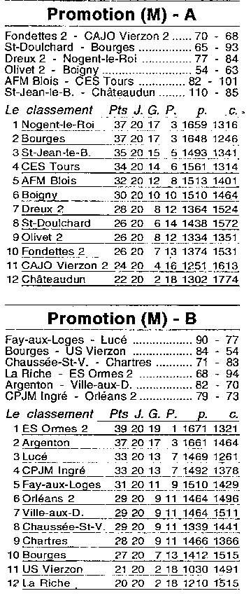 Saison 2003-2004 : Résultats et Classements après la 20ème Journée des Championnats Régionaux