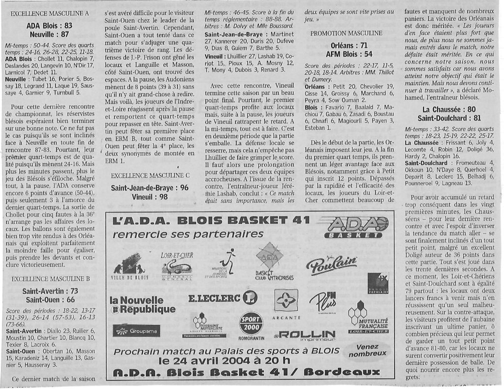 Saison 2003-2004 : En Championnat de Nationale Masculine 2, l’ADA Blois bat les JSA Bordeaux »