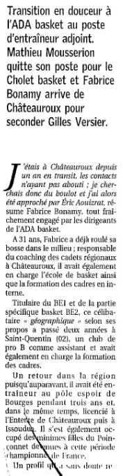 Saison 2004-2005 : Un Nouvel Entraîneur Adjoint à l’ADA Blois