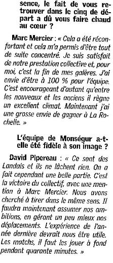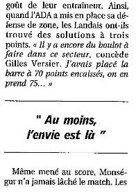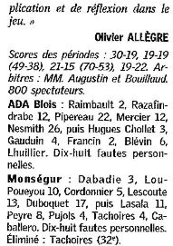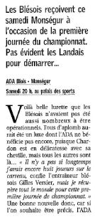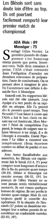 Saison 2004-2005 : Pour son Premier Match en Nationale Masculine 2, l’ADA Blois bat Monségur