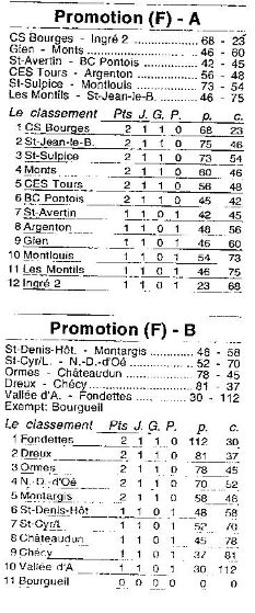 Saison 2004-2005 : Résultats et Classements des Championnats Régionaux après la 1ère Journée du 26 Septembre 2004