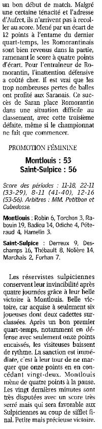 Saison 2004-2005 : Résultats des équipes du Loir-et-Cher engagées dans les Championnats Régionaux lors de la Journée du 17 Octobre 2004