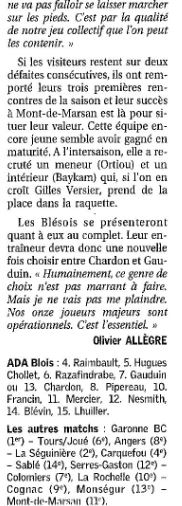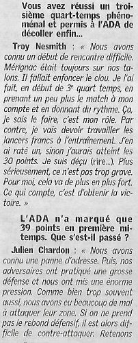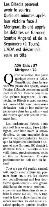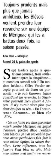 Saison 2004-2005 : Lors de la Journée du 23 Octobre 2004 en Championnat de Nationale Masculine 2, l’ADA Blois bat Mérignac