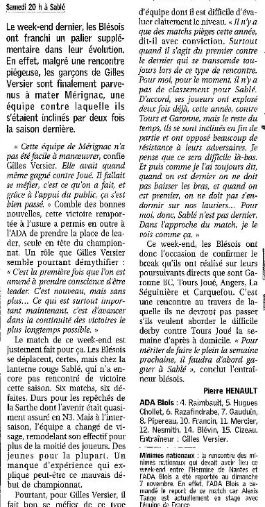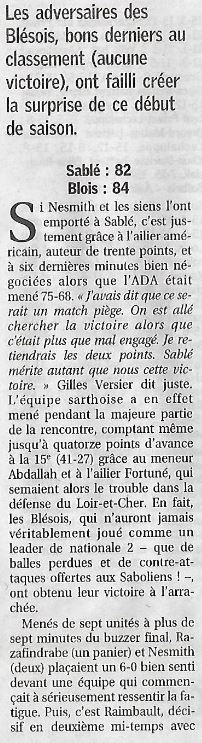 Saison 2004-2005 : Lors de la Journée du 30 Octobre 2004 en Championnat de Nationale Masculine 2, l’ADA Blois bat Sablé-sur-Sarthe
